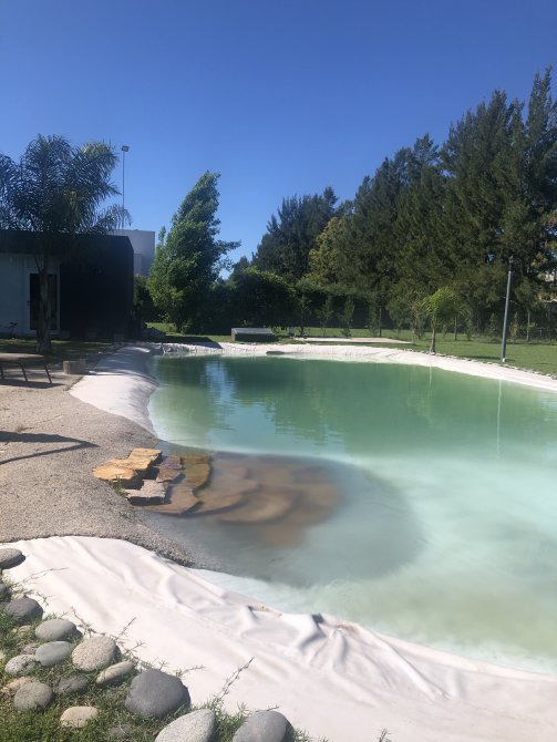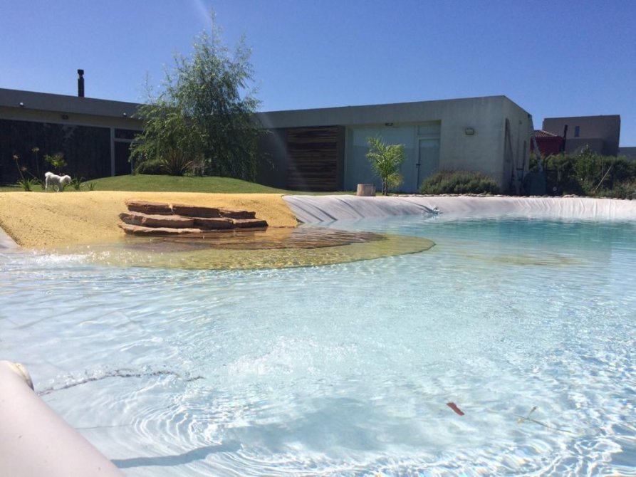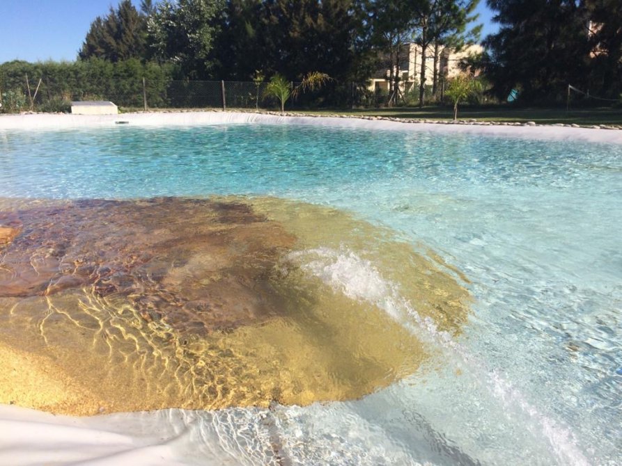 La piscina es de 19 metros x 8,5 y tres niveles de 40 cm, 1,5 mts y 1,95 mts, antigolpes.