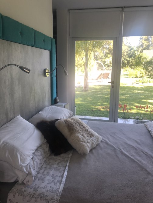 Dos dormitorios, ambos con placards, un dormitorio con vestidor en suite, baño con ducha escocesa, amplio ventanal con vista al parque y salida a la piscina. Piso radiante eléctrico con regulación individual en habitaciones y baños. Tercer dormitorio o lugar de escritorio.