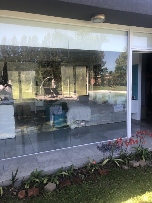 Destacada casa minimalista de CATEGORÍA en barrio privado Malibú, sobre lote de 1600 m2, 4 ambientes y hermosa piscina estilo playa húmeda.