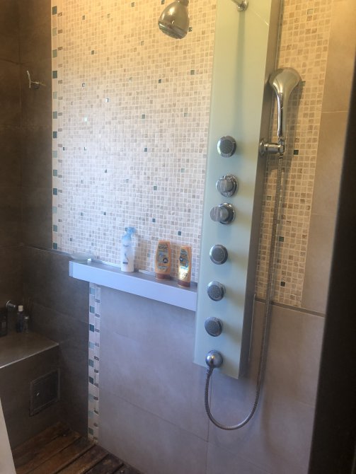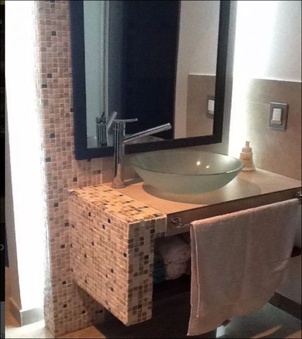 Estar/biblioteca, pasillo hacia dormitorios con dos placards. Antebaño con bacha y mesada de mármol travertino y venecita. Baño completo con ducha escocesa, placard de piso a techo.