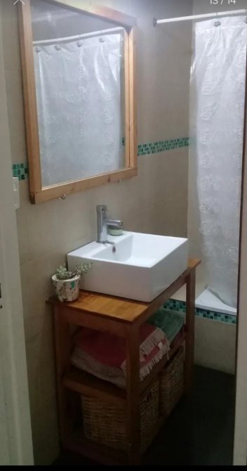 - Baño 2 x 2 Mts2. Con bañera enlozada de 1,70 de largo, piso de porcelanato, mueble de madera con bacha de loza.