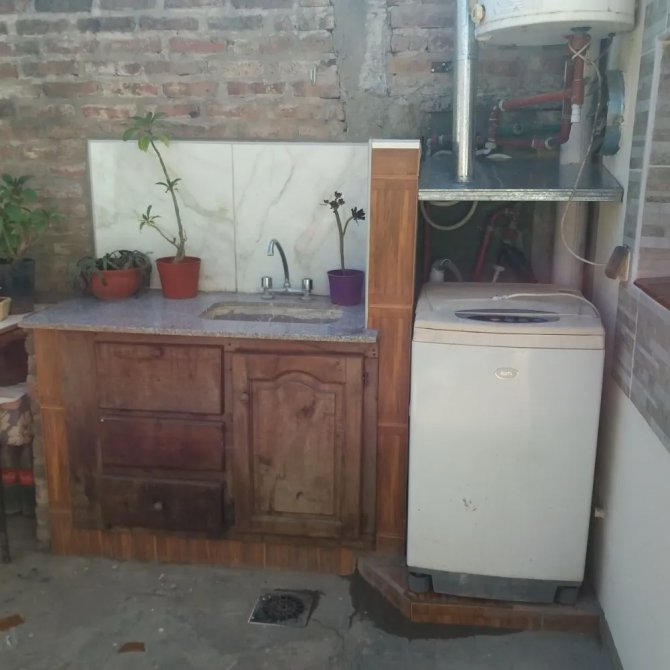 * Lavadero exterior con mesada y bajo mesada en algarrobo con espacio lavarropas.