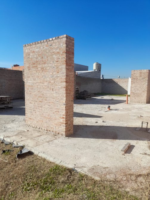 Perímetro con pilotes y mampostería ancho de 30 cm, ambos laterales y fondo del lote.