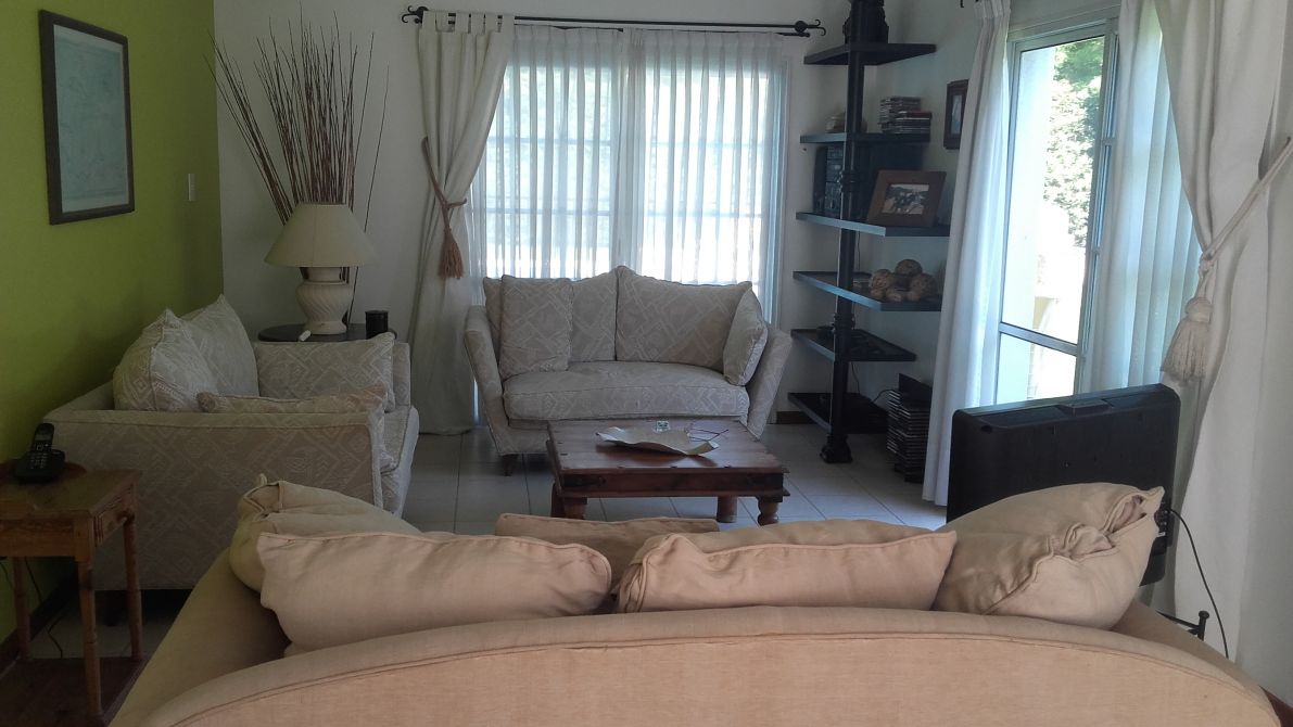 La casa cuenta con living, comedor muy amplio y luminoso, cocina equipada con mesada, bajo mesada y alacena, tres dormitorios; el principal en suite con vestidor y balcón con excelente vista, un segundo baño para los demás dormitorios, y un toilette en el piso de abajo. pisos de cerámica y alfombras, lavadero independiente, galería con parrilla de doble acceso a la propiedad, garaje cubierto para dos autos. En el exterior posee hermosa arboleda perimetral, piscina de 10 mts. x 5 mts. y riego por aspersión.