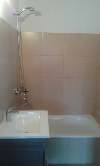 Consta: cocina-comedor con barra desayunadora, baño completo con bañera y balcón al frente, mueble de melamina.