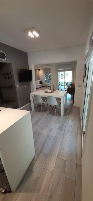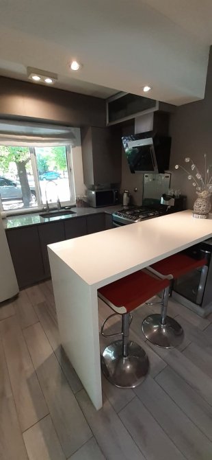 Planta baja refaccionada recientemente, toilette de recepción, cocina comedor con desayunador, living estar con hogar bioetanol, comedor principal con salida a galería en contrafrente. Pisos de porcelanato, detalles de categoría.