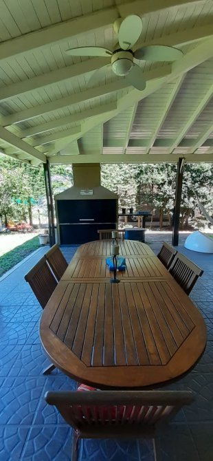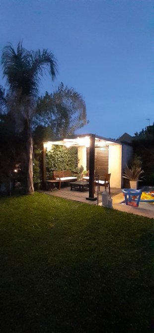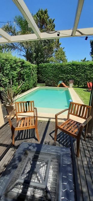 Parque libre con pileta de 7,5 x 3,5 m. con solárium atermico. Cuarto de guardado.