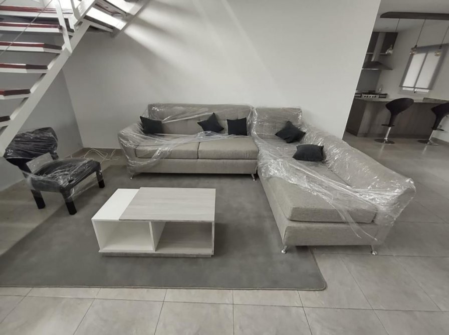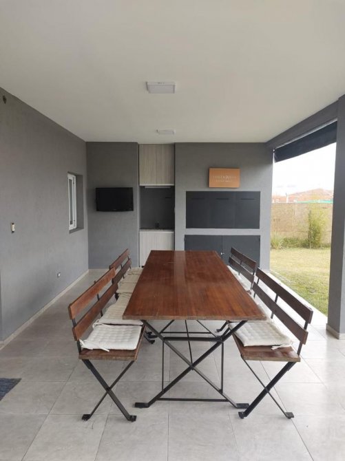 En planta baja cuenta con living integrado a la cocina, completamente equipada con muebles bajo mesada.