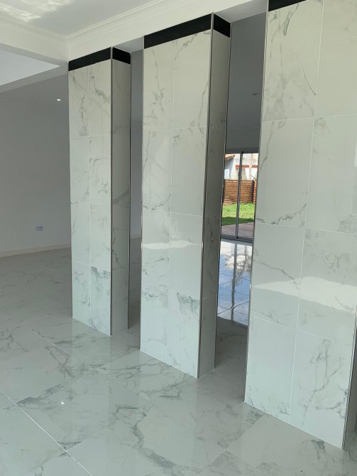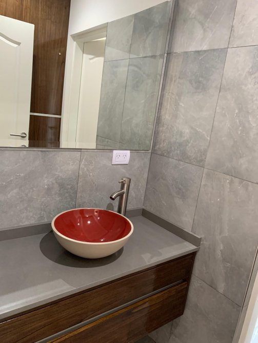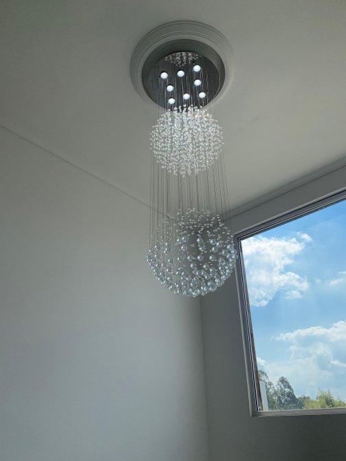 En planta baja tiene cocina con isla y muebles bajo mesada,living comedor separados por detalle de columnas. Pisos de porcelanato, ventanales doble vidrio, toilette de recepcion, dependencia,y espacio de escritorio. Detalle de lámpara colgante en la entrada principal.