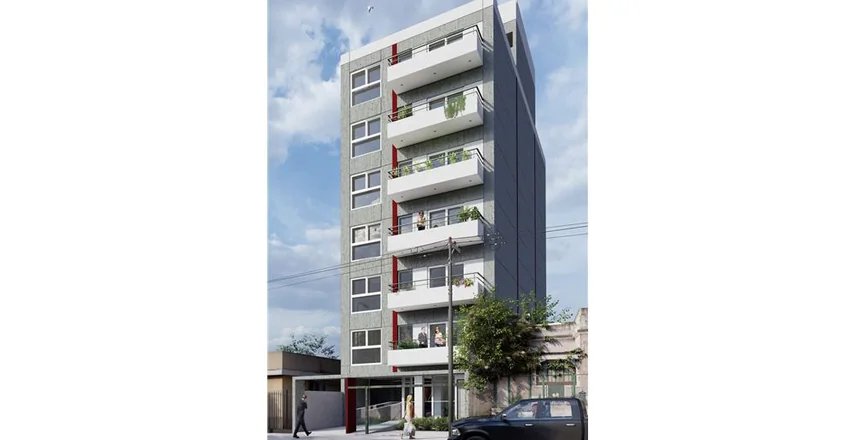 Edificio de seis pisos de altura más planta baja, cuenta con doce departamentos y cocheras opcionales, seis departamentos al frente y seis al contra frente, todos semipisos.