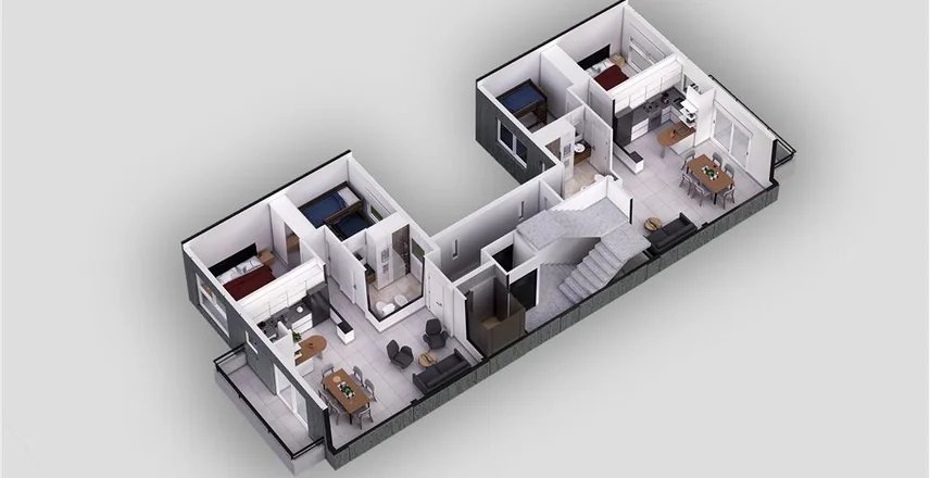 Los departamentos son de 58 m2 aproximadamente, tres ambientes, que constan de amplio living comedor con balcón, dos habitaciones, cocina con lavadero integrado y baño completo.