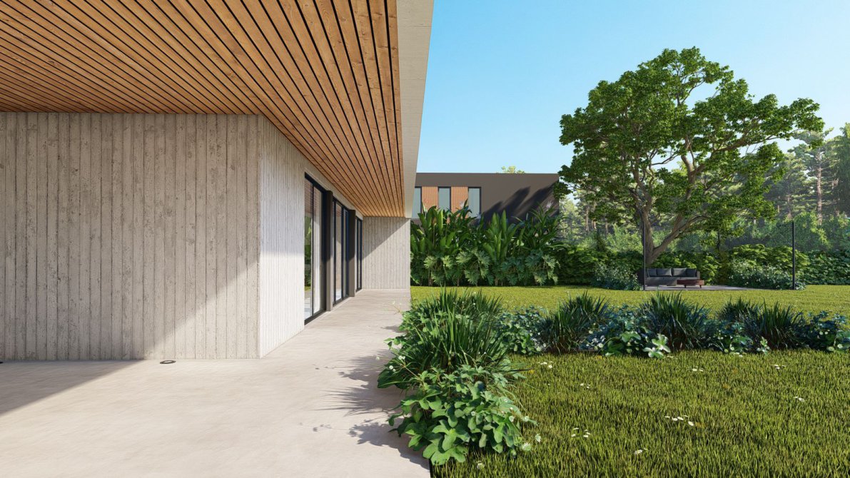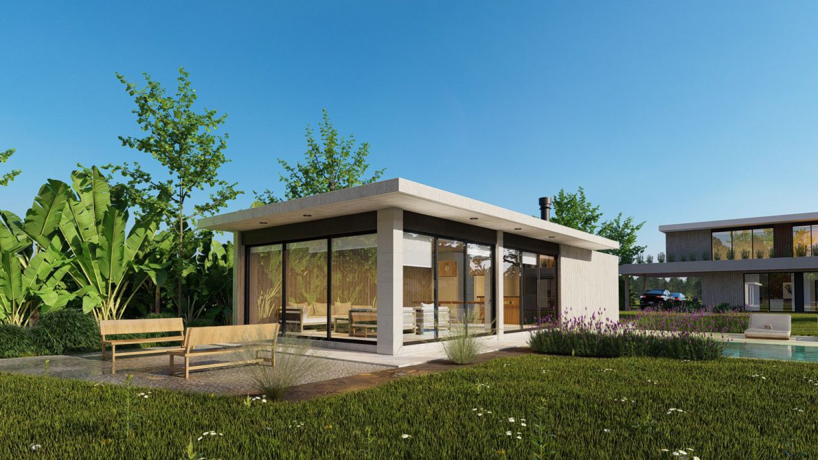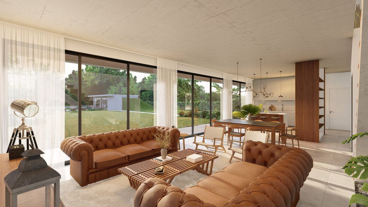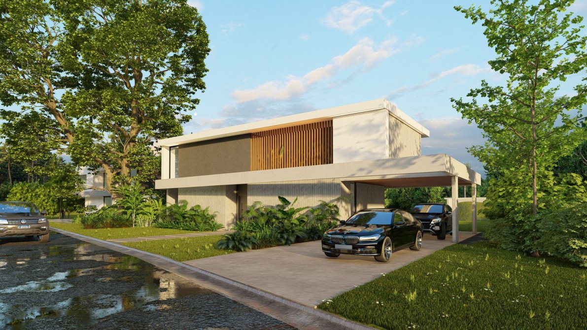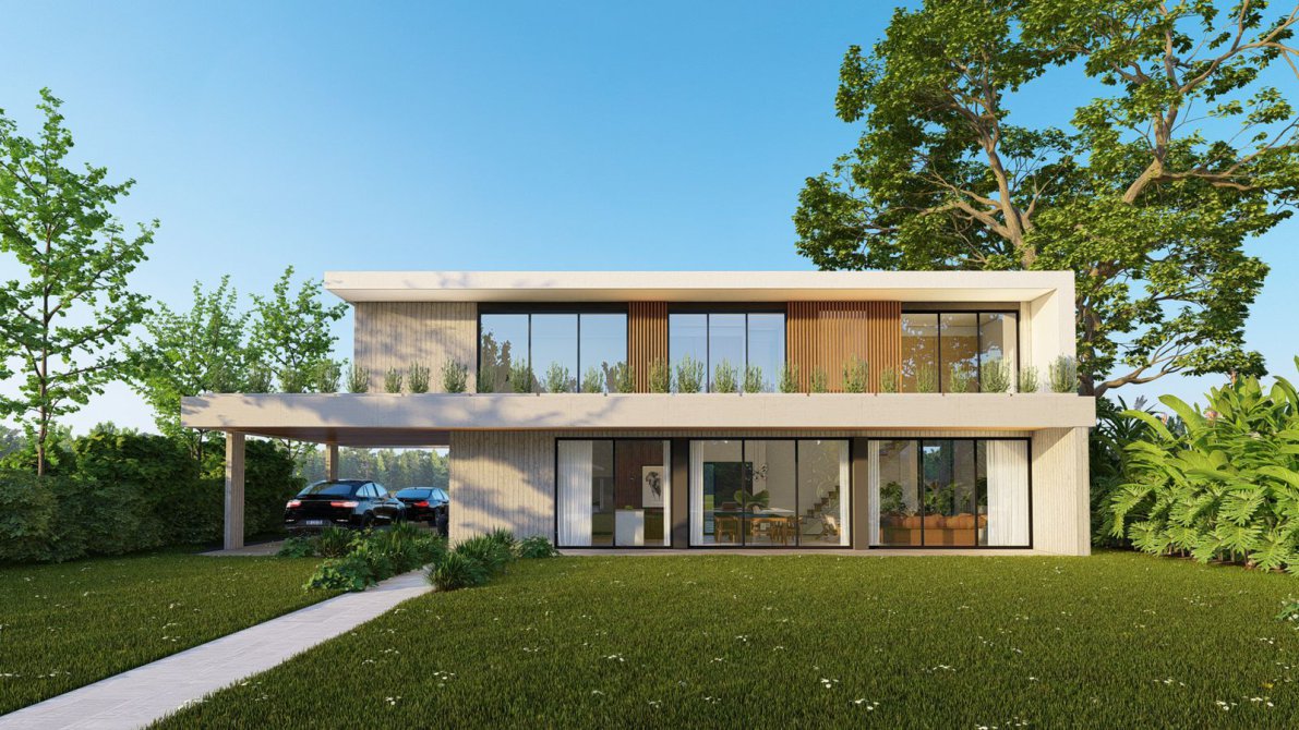 Proyecto base desde 180 m2, casa llave en mano, propiedad de diseño moderno minimalista, terminaciones en hormigon a la vista con amplios ventanales.
