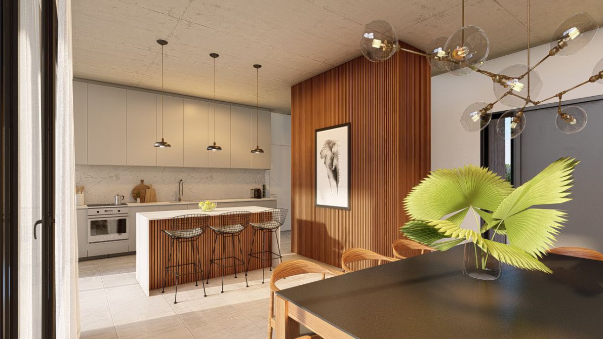 Living comedor integrado amplios ventanales, cocina completa, dependencia con lavadero interno, toilette.
