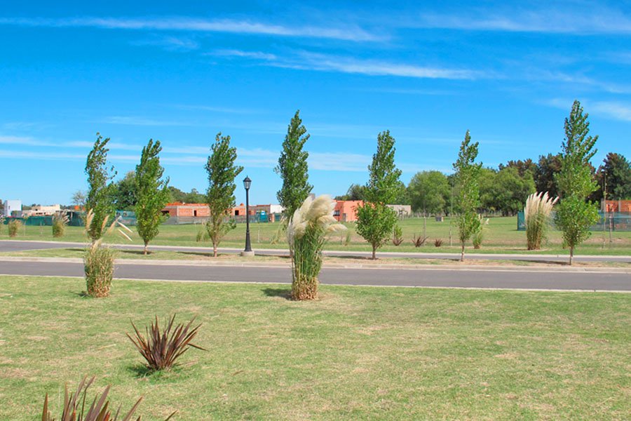 Cuenta con 9 ha de espacios verdes dispuestos para la vida social y deportiva (canchas de tenis, fútbol y pileta), SUM y parque central de 5 ha.